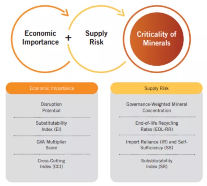 - Definition: These are the minerals which are essential for economic development and national security but the scarcity and limitation of its geographical availability leading to supply chain vulnerability and disruption constitute its criticality.