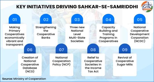 • Women Empowerment: Through links with Self-Help Groups (SHGs), the cooperative framework has integrated nearly 10 crore women into the organized economy.